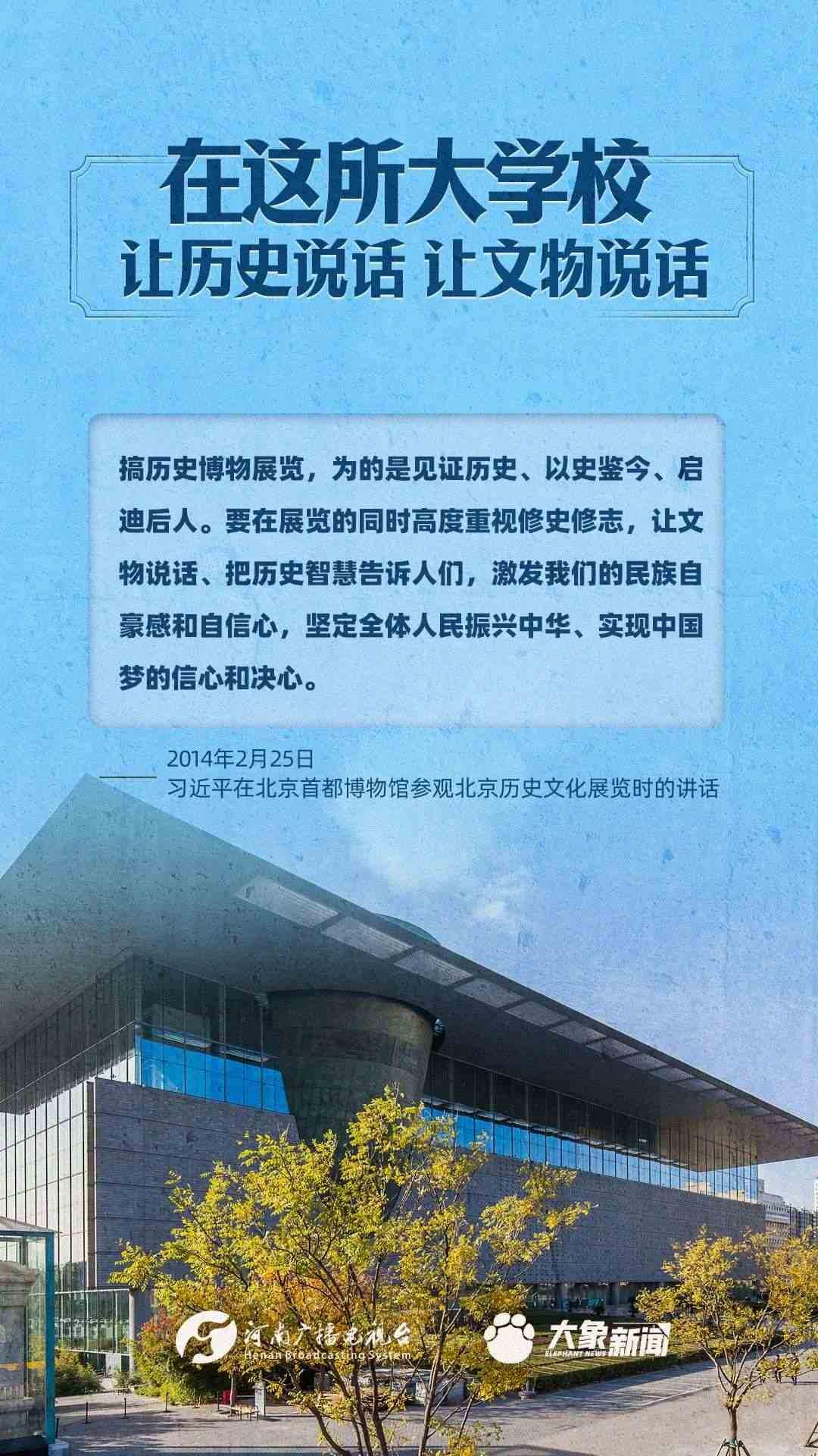 習(xí)近平總書記一直高度重視博物館工作,多次作出重要講話,強(qiáng)調(diào)“一個(gè)博物院就是一所大學(xué)?!?,指出“讓歷史說話,讓文物說話”,要求“守護(hù)好、傳承好、展示好中華文明優(yōu)秀成果”等等,金句連連。大象新聞進(jìn)行了認(rèn)真梳理,邀您一起學(xué)習(xí)。