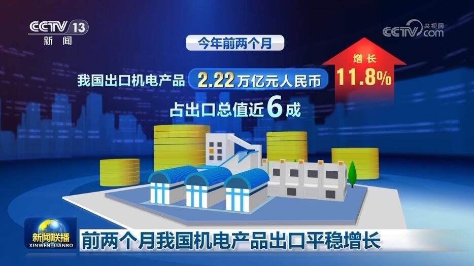 最新數(shù)據顯示,今年前兩個月,全球電子信息市場回暖復蘇,我國機電產品出口平穩(wěn)增長。