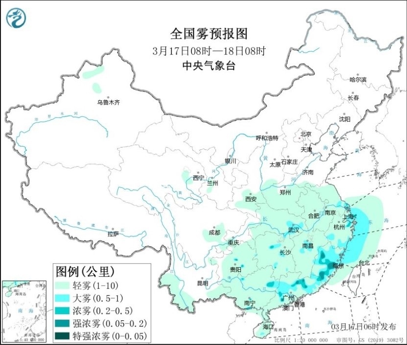 今晨,江蘇、上海、浙江南部、江西中部、福建、廣東、廣西北部、貴州中部等地部分地區(qū)出現(xiàn)大霧天氣,局地能見(jiàn)度不足200米。預(yù)計(jì)今天上午,上述地區(qū)的大霧天氣還將持續(xù),局地有能見(jiàn)度不足200米的強(qiáng)濃霧。此外,黃海南部海域、東海偏西海域、臺(tái)灣海峽將有能見(jiàn)度不足10公里的霧,其中東海西部海域、長(zhǎng)江口附近海域、杭州灣附近海域、浙江沿岸海域、福建北部沿岸海域?qū)⒂心芤?jiàn)度不足1公里的大霧。中央氣象臺(tái)今晨繼續(xù)發(fā)布大霧黃色預(yù)警。