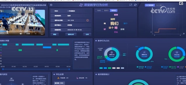 在河北保定競秀學校,一套新引進的智慧教學研一體化系統(tǒng)正在推行。教室里,兩臺智能攝像機對課堂情況進行視頻采集,包括高頻詞、師生互動、講課語速等元素,通過AI技術生成課堂大數(shù)據(jù)分析報告,對于改進教學方法起到意想不到的效果。