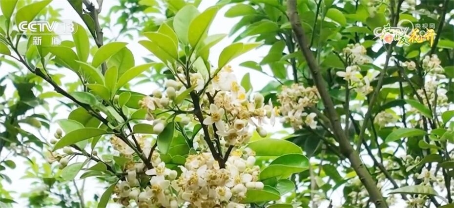 眼下,在廣東化州平定鎮(zhèn)大嶺村,化橘紅花迎來(lái)了盛花期,漫山綻放,春意濃濃。雪白的花朵從片片濃綠中探出頭來(lái),花蕊橙黃、花瓣潔白。