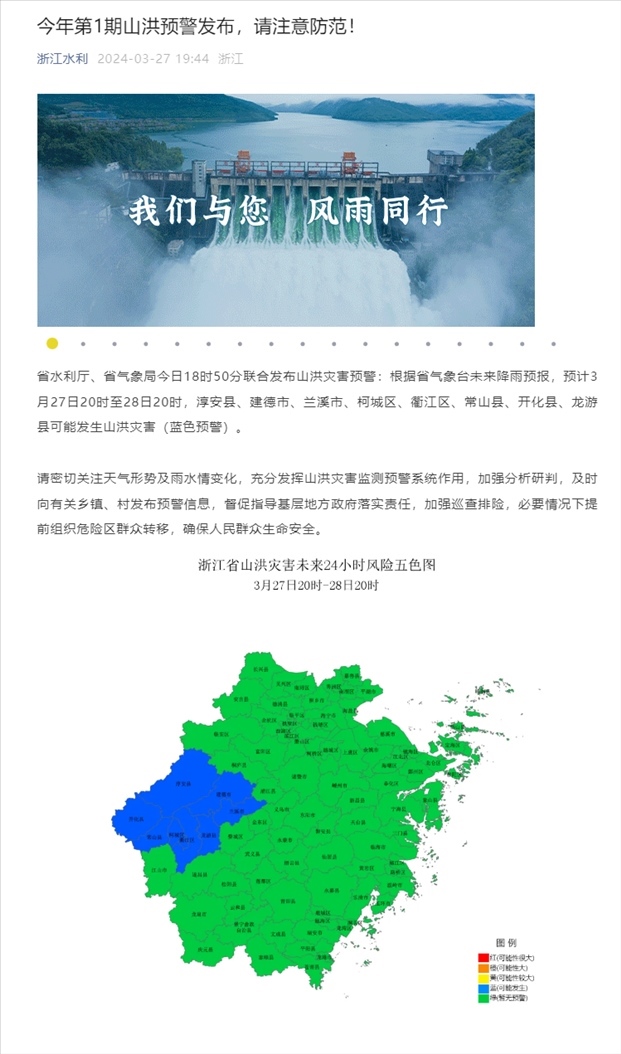 浙江發(fā)布今年第1號(hào)山洪預(yù)警