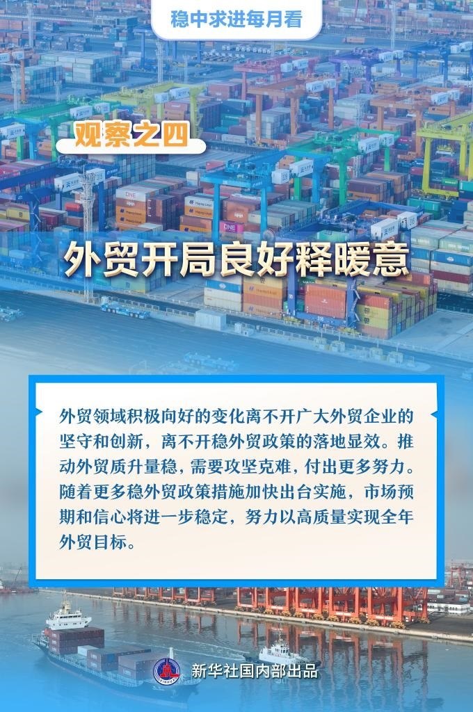 【記者觀察】外貿(mào)領(lǐng)域積極向好的變化離不開廣大外貿(mào)企業(yè)的堅(jiān)守和創(chuàng)新,離不開穩(wěn)外貿(mào)政策的落地顯效。推動(dòng)外貿(mào)質(zhì)升量穩(wěn),需要攻堅(jiān)克難,付出更多努力。隨著更多穩(wěn)外貿(mào)政策措施加快出臺(tái)實(shí)施,市場預(yù)期和信心將進(jìn)一步穩(wěn)定,努力以高質(zhì)量實(shí)現(xiàn)全年外貿(mào)目標(biāo)。