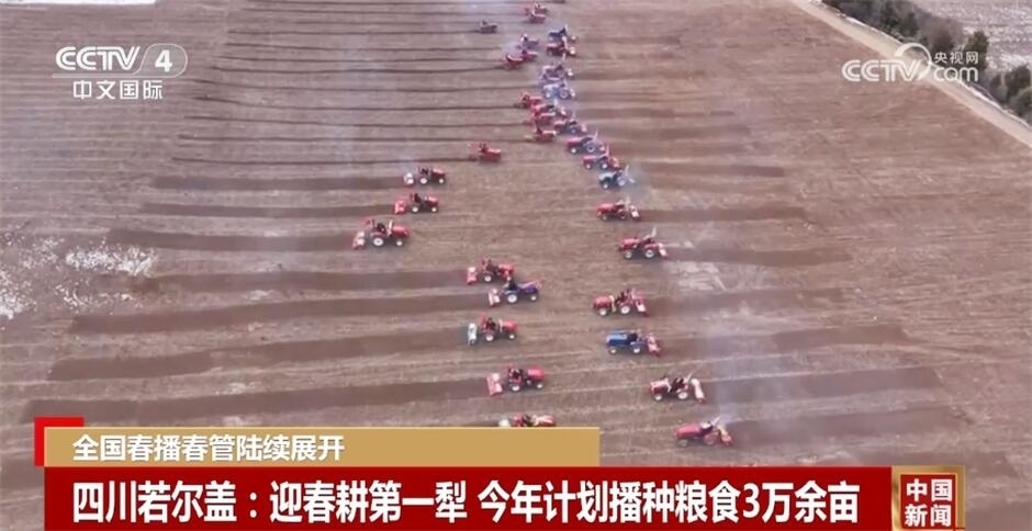 在四川若爾蓋,傳統(tǒng)農耕項目“二牛抬杠”迎來春耕第一犁,騎手們開著旋耕機在田地間輪回翻耕。農業(yè)生產與鄉(xiāng)風文明有機結合,開啟了今年計劃播種糧食3萬余畝的工作。