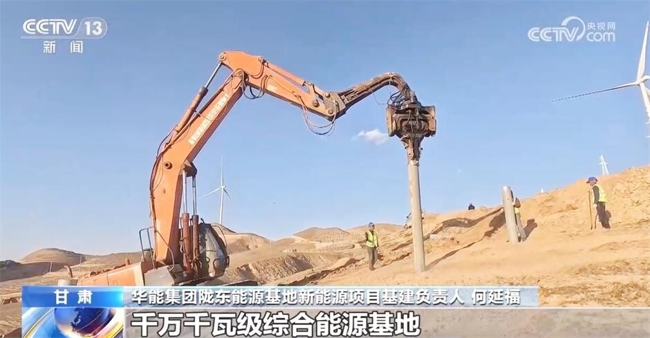 在我國首個(gè)千萬千瓦級(jí)多能互補(bǔ)綜合能源基地——華能隴東能源基地,施工現(xiàn)場(chǎng)一片繁忙景象。目前,基地已建成投產(chǎn)100萬千瓦容量,在建500萬千瓦容量。