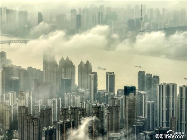 2024年4月1日,武漢出現平流霧景觀,高樓建筑云霧中若隱若現,如夢如幻。