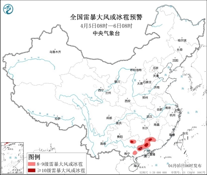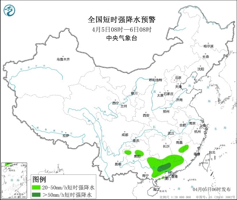央視網消息:中央氣象臺4月5日06時發(fā)布強對流天氣藍色預警。預計4月5日08時至6日08時,江西南部、廣西東部、廣東中西部和北部等地的部分地區(qū)將有8級以上雷暴大風或冰雹天氣;其中,廣西東北部、廣東中西部和北部等地的局地將有10級以上雷暴大風;另外,湖南南部、江西南部、福建西部、貴州西北部和中部、廣西東部、廣東中西部和北部等地的部分地區(qū)將有小時雨量大于20毫米的短時強降水天氣;其中,廣西東部和廣東中西部等地的局地最大小時雨量大于50毫米,個別地方可達80毫米以上。