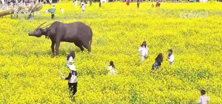 在山東,濟(jì)寧兗州區(qū)花海彩田千畝油菜花這幾天陸續(xù)開(kāi)放,目之所及宛如一片金色海洋,在風(fēng)中泛起金色波浪,散發(fā)出陣陣花香,來(lái)自各地的游客徜徉在花海里踏青賞花、拍照。在蒙陰縣,70多萬(wàn)畝桃花競(jìng)相開(kāi)放,周圍十里桃林爭(zhēng)奇斗艷,朵朵桃花綻放枝頭,或深紅或淺白,與這里獨(dú)特的群崮交相輝映,美不勝收,引得大批游客一起上春山、賞桃花,感受十里桃花的幸福和浪漫。