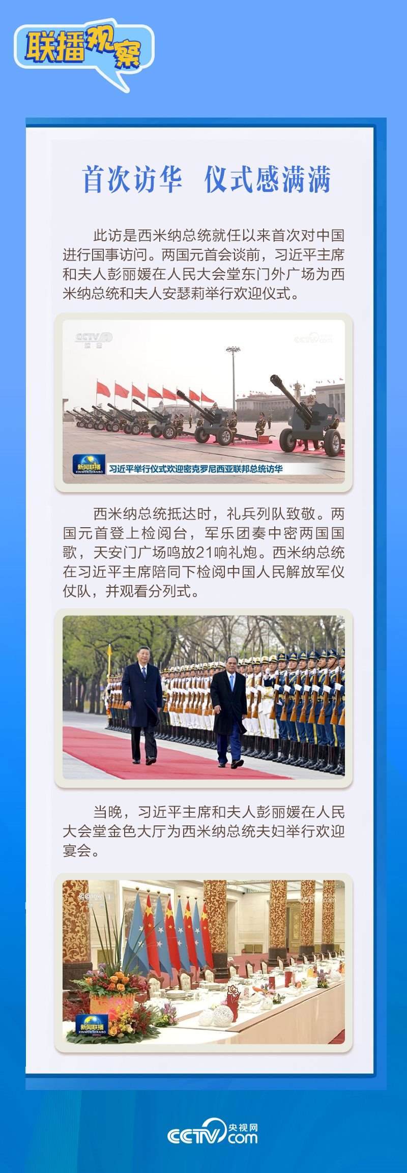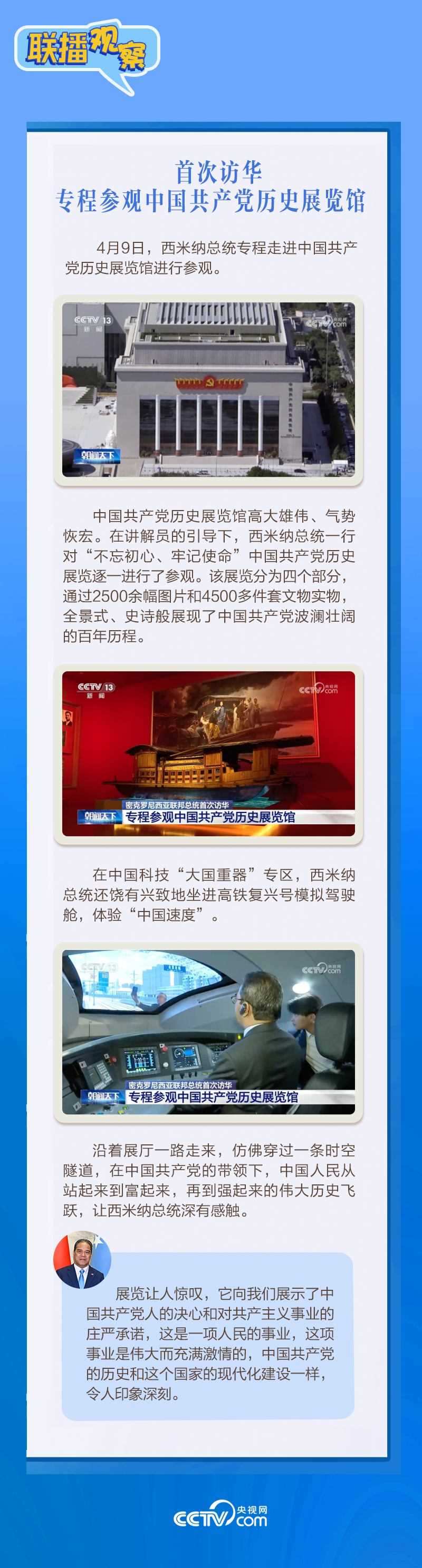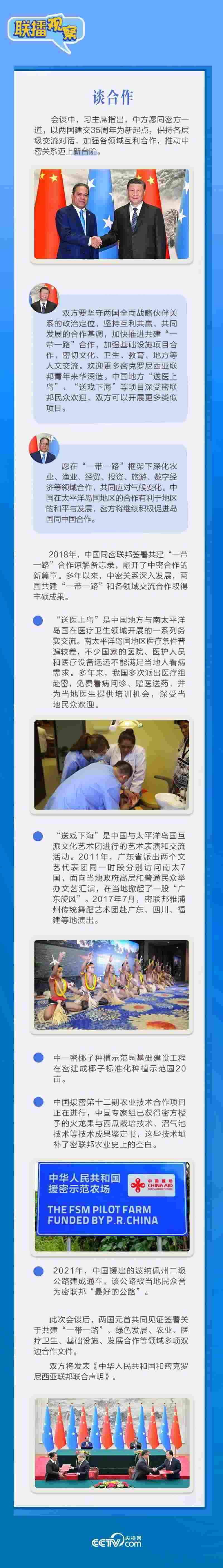 應(yīng)習(xí)近平主席邀請(qǐng),密克羅尼西亞聯(lián)邦總統(tǒng)韋斯利·西米納于4月5日至12日對(duì)中國進(jìn)行國事訪問。4月9日下午,習(xí)近平主席在北京人民大會(huì)堂同西米納總統(tǒng)舉行會(huì)談,就雙邊關(guān)系發(fā)展及共同關(guān)心的問題深入交換意見。雙方會(huì)談哪些細(xì)節(jié)值得關(guān)注?央視網(wǎng)《聯(lián)播觀察》帶您了解。