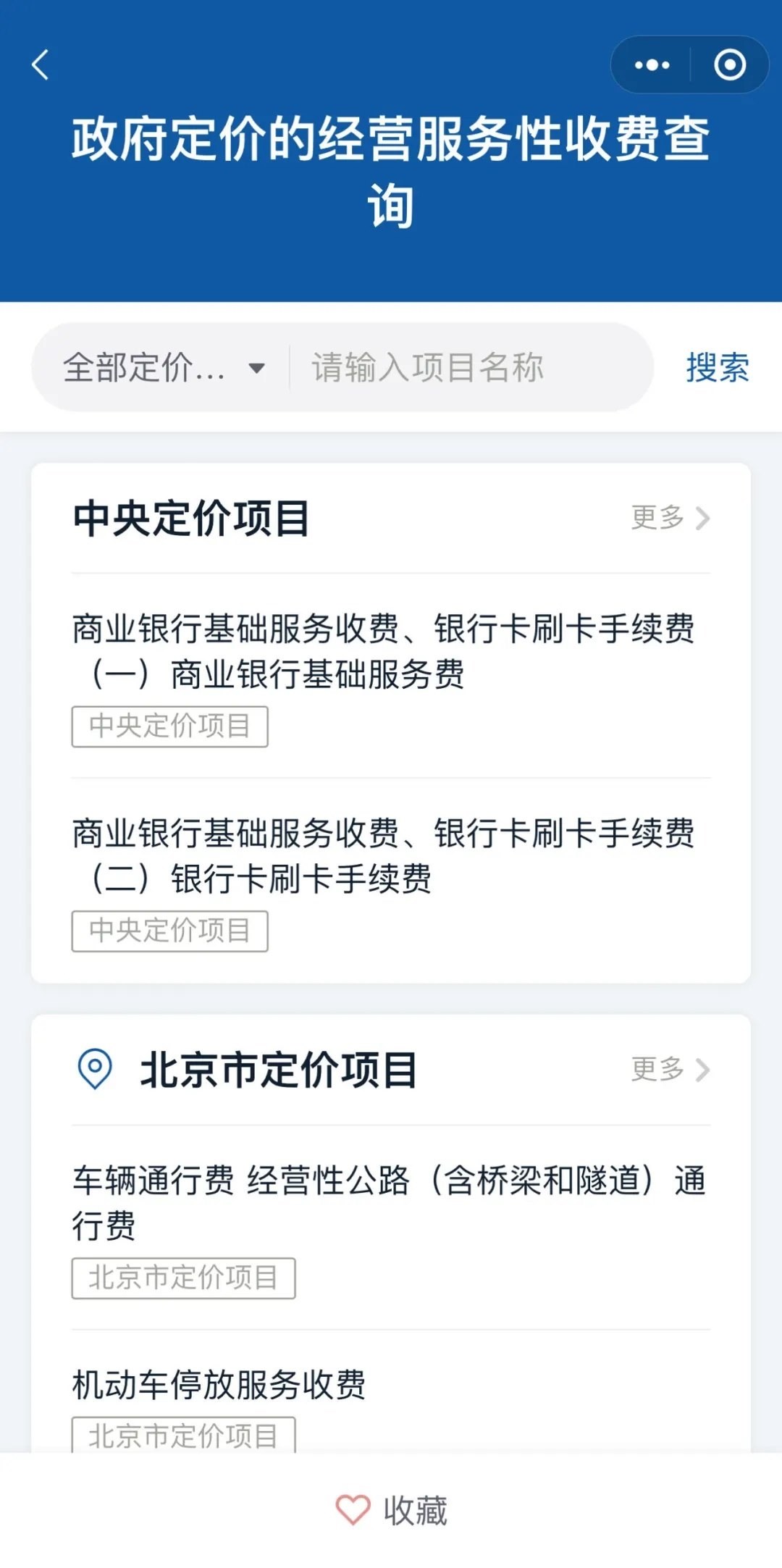 你可以選定對(duì)應(yīng)的省市地區(qū),專門查看當(dāng)?shù)卣▋r(jià)的經(jīng)營(yíng)服務(wù)性收費(fèi)項(xiàng)目,也可以在搜索框中輸入關(guān)鍵詞,一鍵了解某項(xiàng)收費(fèi)是否屬于政府定價(jià)。