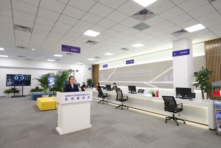 中國(guó)(上海)自由貿(mào)易試驗(yàn)區(qū)臨港新片區(qū)數(shù)據(jù)跨境服務(wù)中心內(nèi)景。該中心4月7日啟用運(yùn)營(yíng),致力于為數(shù)據(jù)處理者提供全方位、全流程數(shù)據(jù)跨境服務(wù),包括材料受理、業(yè)務(wù)咨詢(xún)等,在臨港新片區(qū)打造數(shù)據(jù)跨境流動(dòng)的綠色通道(2024年4月9日攝)。