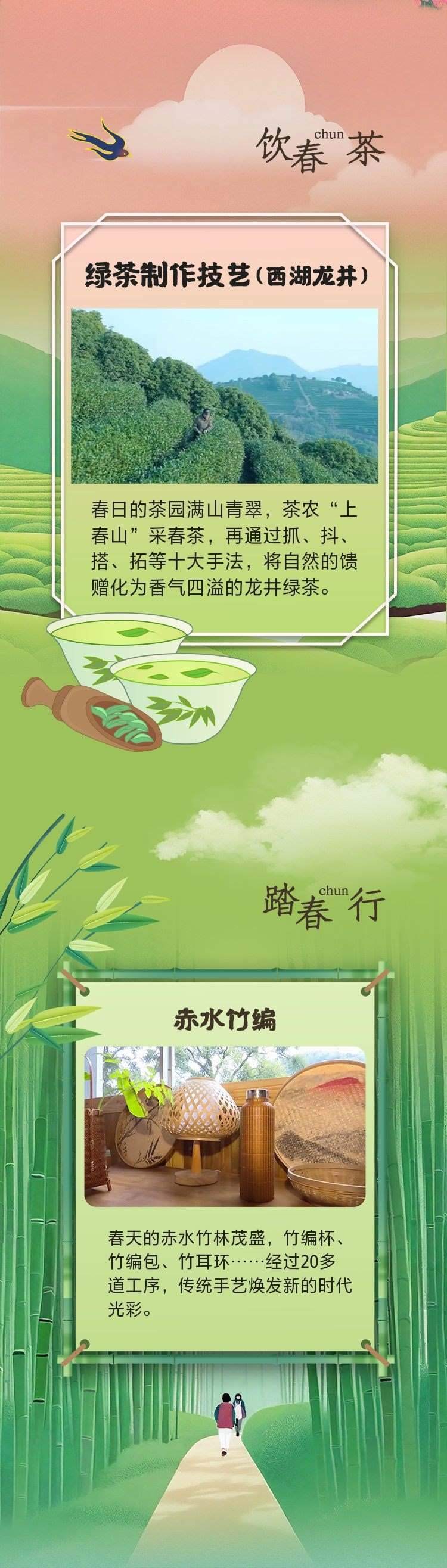 春花爛漫,踏春而行;茶香四溢,品味人生;竹林漫步,心隨風(fēng)靜;感悟春光,詩(shī)情畫(huà)意;草長(zhǎng)鶯飛,紙鳶翩躚……賞春花、上春山、享春光,讓我們抓住春天的尾巴,與非遺國(guó)潮來(lái)一場(chǎng)美麗的邂逅!