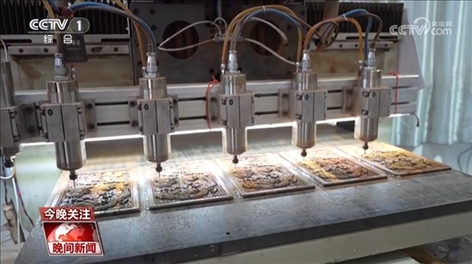 福建省天材古典工藝有限公司總經理 黃海聲:這種首飾盒,一年整個鎮(zhèn)應該向海內外銷量超過幾十萬件。傳統(tǒng)的師傅如果純手工雕刻,至少要花一個多月的時間。我們現在通過數字化的賦能,師傅把樣品做出來之后,通過數字化軟件傳輸給我們的機器然后進行雕刻,半天的時間就能夠生產出來。機器設備也不斷地去優(yōu)化,每刀下去的精度差不多頭發(fā)絲這么細。