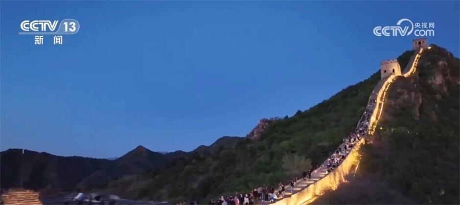 在密云,司馬臺(tái)長(zhǎng)城也在夜間被“點(diǎn)亮”,如火龍般在山間蜿蜒。游客可以提燈夜游,感受古長(zhǎng)城的磅礴氣勢(shì),也能泛舟河面,遠(yuǎn)望山巒朦朧,近觀燈火輝煌。景區(qū)還推出音樂(lè)、舞蹈、詩(shī)歌和繪畫相結(jié)合的演出活動(dòng),無(wú)人機(jī)在夜空中的飛行表演也給市民游客帶來(lái)了震撼的視聽享受。