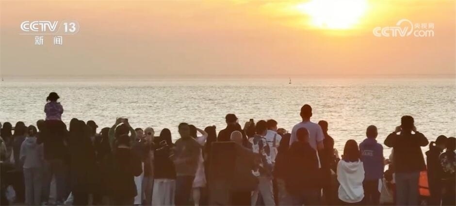 這兩天,浙江海鹽縣的觀海園吸引了來(lái)自全國(guó)各地的游客,共賞“最美日出”。凌晨五點(diǎn)多,晨曦微露,海鹽縣觀海園的魚鱗海塘邊,近萬(wàn)人靜靜守候,當(dāng)?shù)谝豢|陽(yáng)光刺破云層,游客們紛紛拿出手機(jī)、相機(jī)記錄下這動(dòng)人一刻。