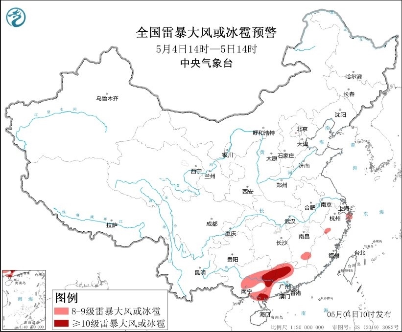 央視網(wǎng)消息:中央氣象臺5月4日10時繼續(xù)發(fā)布強對流天氣藍色預(yù)警,預(yù)計5月4日14時至5日14時,廣西中東部、廣東西部、江西南部等地的部分地區(qū)將有8-10級雷暴大風(fēng)或冰雹天氣,其中廣西東部和東南部沿海、廣東西北部和西南部沿海等地的局地將有10級以上雷暴大風(fēng),最大風(fēng)力可達11級;湖南南部、江西、福建西部和東南部、貴州西南部、廣西中東部、廣東、海南島北部等地的部分地區(qū)將有小時雨量大于20毫米的短時強降水天氣,其中廣西東部、廣東中西部等地的局地最大小時雨量大于50毫米,最大可達80毫米以上。
