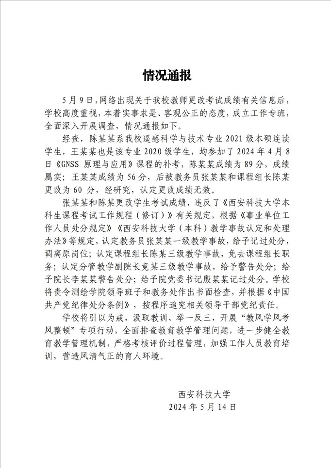 ·學(xué)生成績(jī)按“鬧”修改?西安科大通報(bào):更改成績(jī)無(wú)效,多人被處分。