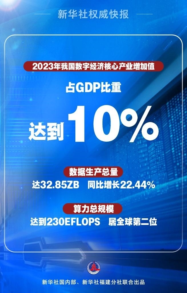2023年我國(guó)數(shù)字經(jīng)濟(jì)核心產(chǎn)業(yè)增加值占GDP比重達(dá)到10%