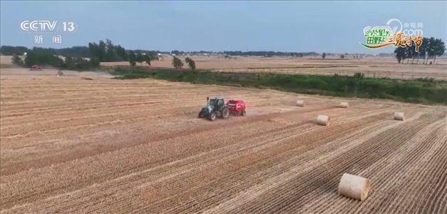 河南省駐馬店市正陽縣新天地草業(yè)有限公司負(fù)責(zé)人蔣金鋒介紹:“目前,我們企業(yè)已經(jīng)接到全國各地的小麥秸稈訂單2萬噸,我們把這些秸稈捆了拉走之后,一部分用于養(yǎng)殖場的飼草,一部分用于發(fā)電廠燒鍋爐用,再一個(gè)能幫助農(nóng)民每畝地可以節(jié)省30—40元的人工成本和機(jī)械秸稈還田的費(fèi)用。”