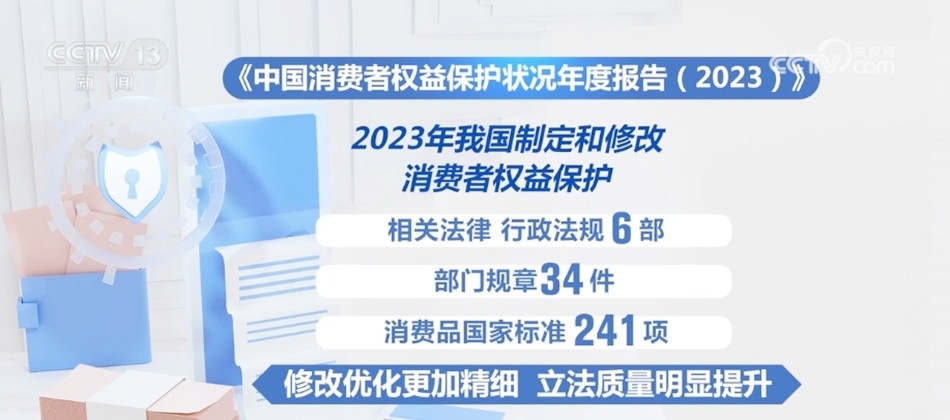 年度報告顯示,2023年我國制定和修改了消費者權(quán)益保護相關(guān)法律、行政法規(guī)6部、部門規(guī)章34件、消費品國家標(biāo)準(zhǔn)241項,修改優(yōu)化更加精細,立法質(zhì)量明顯提升。