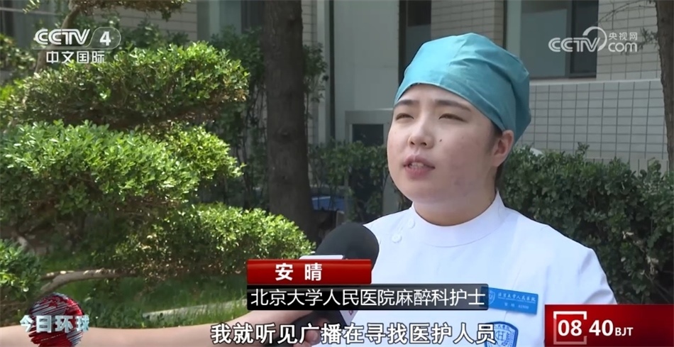 北京大學(xué)人民醫(yī)院麻醉科護(hù)士安晴稱:“進(jìn)了地鐵閘機(jī)門之后,我就聽見廣播在尋找醫(yī)護(hù)人員 ,我就趕緊從樓梯走了下去。當(dāng)時患者已經(jīng)沒有反應(yīng)了,已經(jīng)呼之不應(yīng)了,我就立馬上前查看了一下她的瞳孔,當(dāng)時瞳孔已經(jīng)散大了,然后摸了一下頸動脈的搏動,也是消失的,我就判定她為心臟驟停,然后緊急對她進(jìn)行了胸外按壓?!?/p>