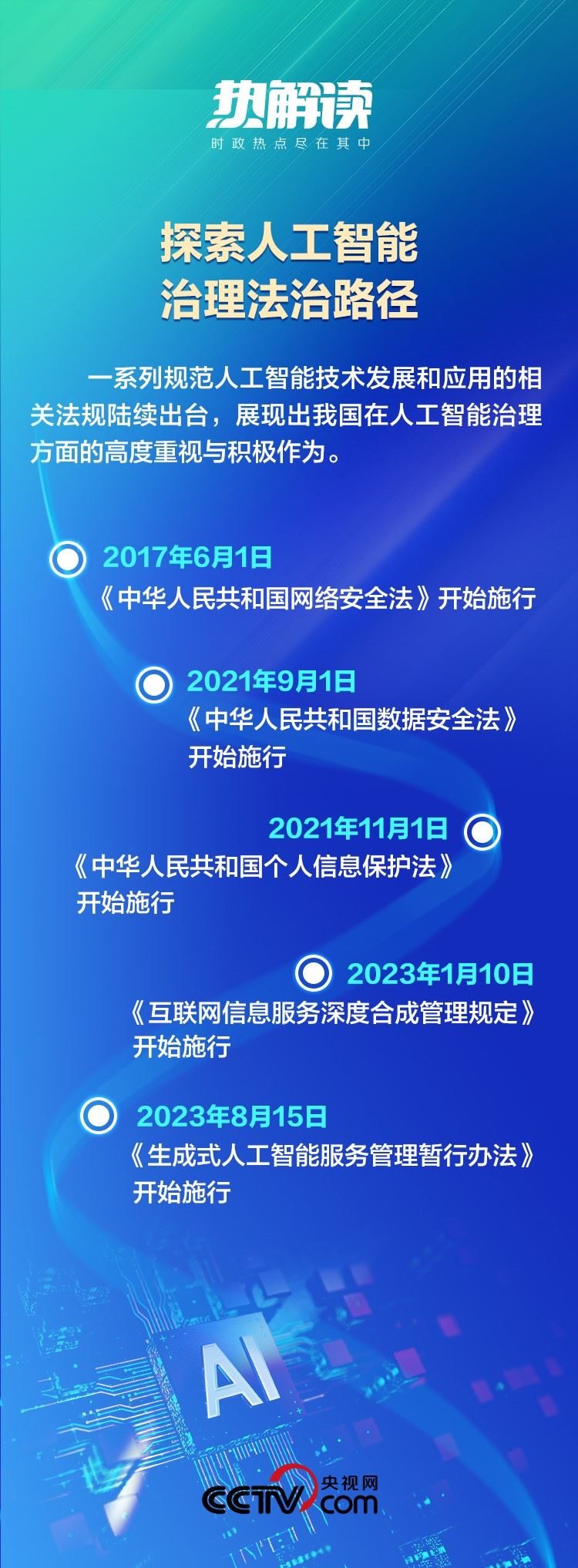 2023年10月,第三屆“一帶一路”國(guó)際合作高峰論壇開幕,習(xí)主席宣布中方提出《全球人工智能治理倡議》。這一倡議堅(jiān)持“以人為本、智能向善”,為世界提供了基于人類命運(yùn)共同體理念的人工智能治理新視角。