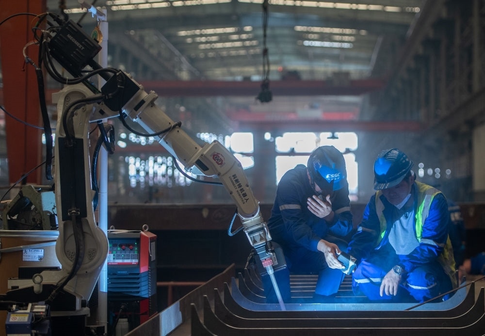 2024年5月16日,工作人員在湖北省武漢市新洲區(qū)武昌船舶重工集團(tuán)有限公司查看焊接機(jī)器人焊接的焊縫。近年來(lái),該公司圍繞新型公務(wù)船、高端海工船、中小型綠色智能油化船和支線集裝箱船等主建船型,積極推進(jìn)數(shù)字化轉(zhuǎn)型與智能制造,助力航運(yùn)高質(zhì)量發(fā)展。