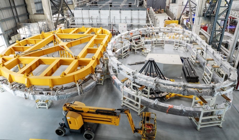 2024年5月27日在聚變堆主機(jī)關(guān)鍵系統(tǒng)綜合研究設(shè)施(CRAFT)園區(qū)內(nèi)拍攝的TF超導(dǎo)線圈生產(chǎn)線(無(wú)人機(jī)照片)。該研究設(shè)施將為未來(lái)中國(guó)聚變實(shí)驗(yàn)堆、工程堆的設(shè)計(jì)建設(shè),搭建參數(shù)高、性能全、功能完備的綜合性研究及測(cè)試平臺(tái)。