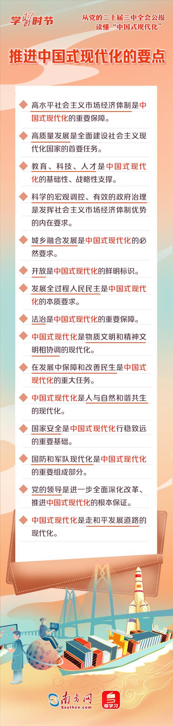 中國(guó)式現(xiàn)代化是中國(guó)共產(chǎn)黨和中國(guó)人民長(zhǎng)期實(shí)踐探索的成果,是一項(xiàng)偉大而艱巨的事業(yè)。全會(huì)公報(bào)中,“中國(guó)式現(xiàn)代化”一詞被反復(fù)提及,深刻闡述了進(jìn)一步全面深化改革與推進(jìn)中國(guó)式現(xiàn)代化的關(guān)系,以及中國(guó)式現(xiàn)代化的重要保障、必然要求、本質(zhì)要求等重要內(nèi)容。一起來(lái)學(xué)習(xí)!