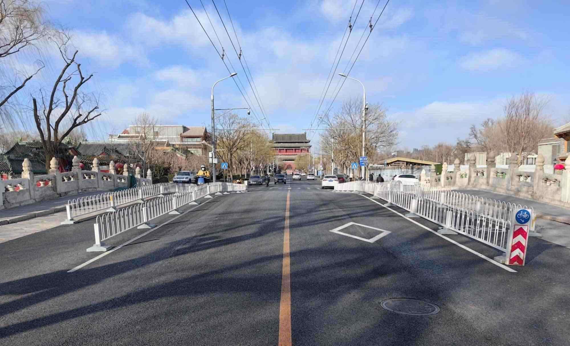 站在萬(wàn)寧橋上遙望中軸線(xiàn)北端的鼓樓