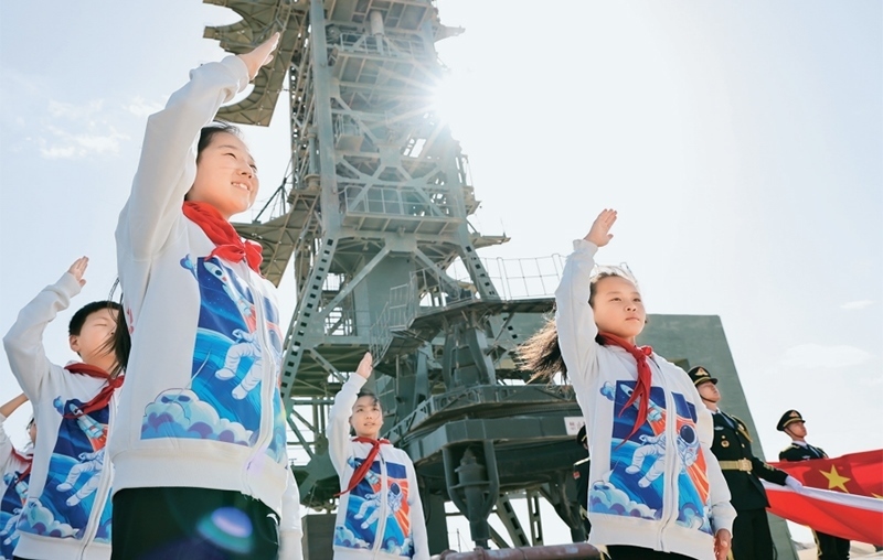 少先隊(duì)是建設(shè)社會(huì)主義和共產(chǎn)主義的預(yù)備隊(duì)。廣大少先隊(duì)員在少先隊(duì)這所大學(xué)校里立志向、修品行、練本領(lǐng),從小培養(yǎng)熱愛(ài)黨、熱愛(ài)祖國(guó)、熱愛(ài)人民的情懷,展現(xiàn)出朝氣蓬勃的精神風(fēng)貌。2024年4月24日是第九個(gè)“中國(guó)航天日”,“紅領(lǐng)巾愛(ài)祖國(guó)——我心中的五星紅旗”主題活動(dòng)在中國(guó)酒泉衛(wèi)星發(fā)射中心東方紅衛(wèi)星發(fā)射場(chǎng)舉行。圖為當(dāng)日,來(lái)自內(nèi)蒙古、甘肅、四川等地的少先隊(duì)員在中國(guó)酒泉衛(wèi)星發(fā)射中心東方紅衛(wèi)星發(fā)射塔架下敬隊(duì)禮。 新華社記者 金立旺/攝