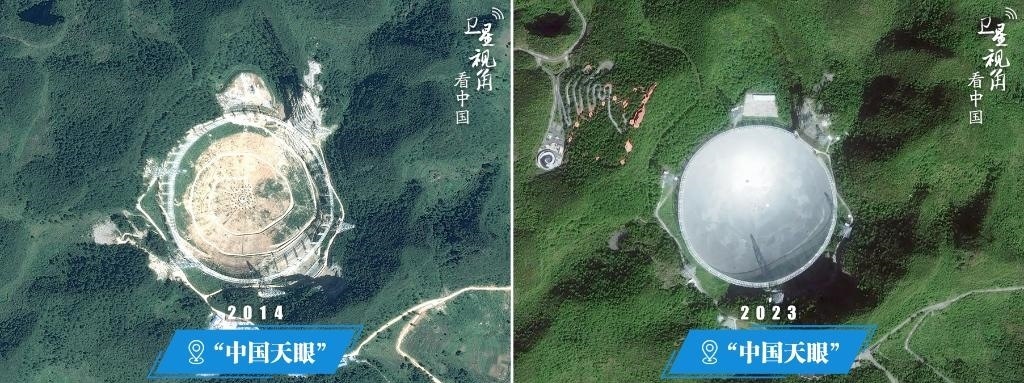 “中國天眼”全稱500米口徑球面射電望遠鏡,位于貴州省平塘縣,是我國獨立自主設計并建造的世界最大的單口徑射電望遠鏡。工程于2011年3月動工興建,2016年9月落成啟用。