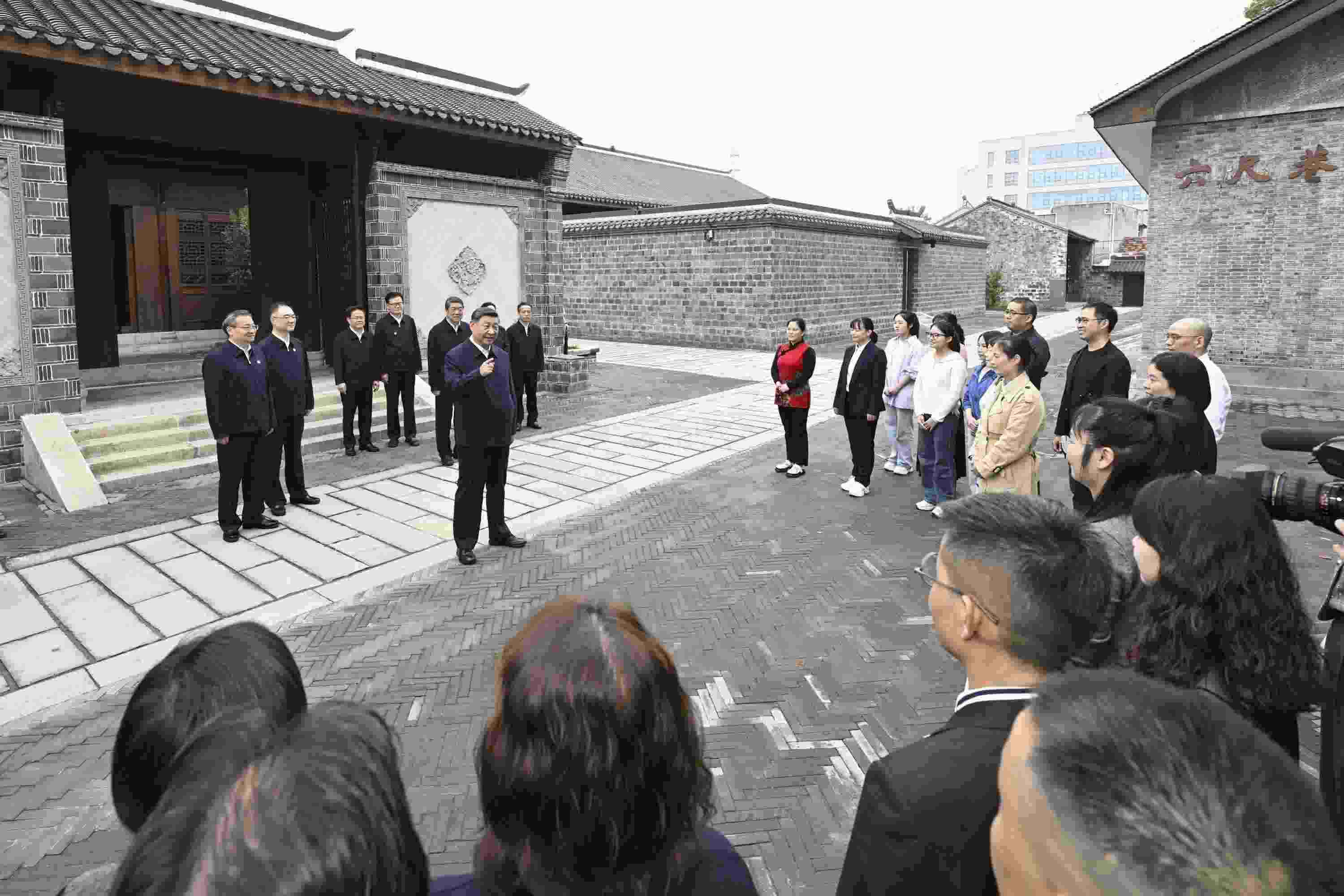 △2024年10月17日,習近平總書記在安徽省安慶桐城市六尺巷考察時,同當?shù)鼐用窈陀慰陀H切交流。