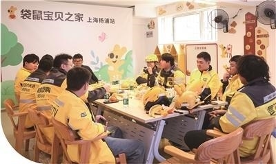 外賣送餐員在楊浦區(qū)殷行街道的騎手驛站參加騎手懇談會。朱 良攝