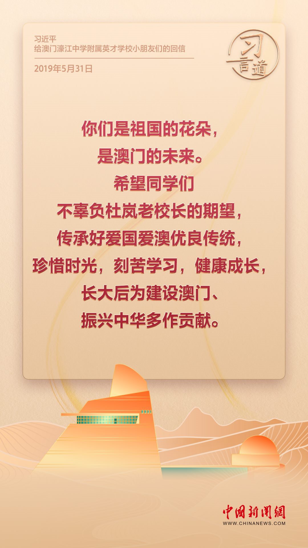 2024年是澳門回歸祖國25周年。多年來,習(xí)近平主席始終關(guān)注澳門經(jīng)濟(jì)社會發(fā)展、百姓福祉,寄語“澳門的發(fā)展厚積薄發(fā)、未來可期”。