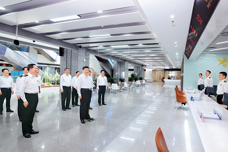 2024年10月15日至16日,中共中央總書(shū)記、國(guó)家主席、中央軍委主席習(xí)近平在福建考察。這是16日上午,習(xí)近平在中國(guó)(福建)自由貿(mào)易試驗(yàn)區(qū)廈門(mén)片區(qū)考察時(shí),同綜合服務(wù)大廳窗口工作人員親切交流。 新華社記者 鞠鵬/攝