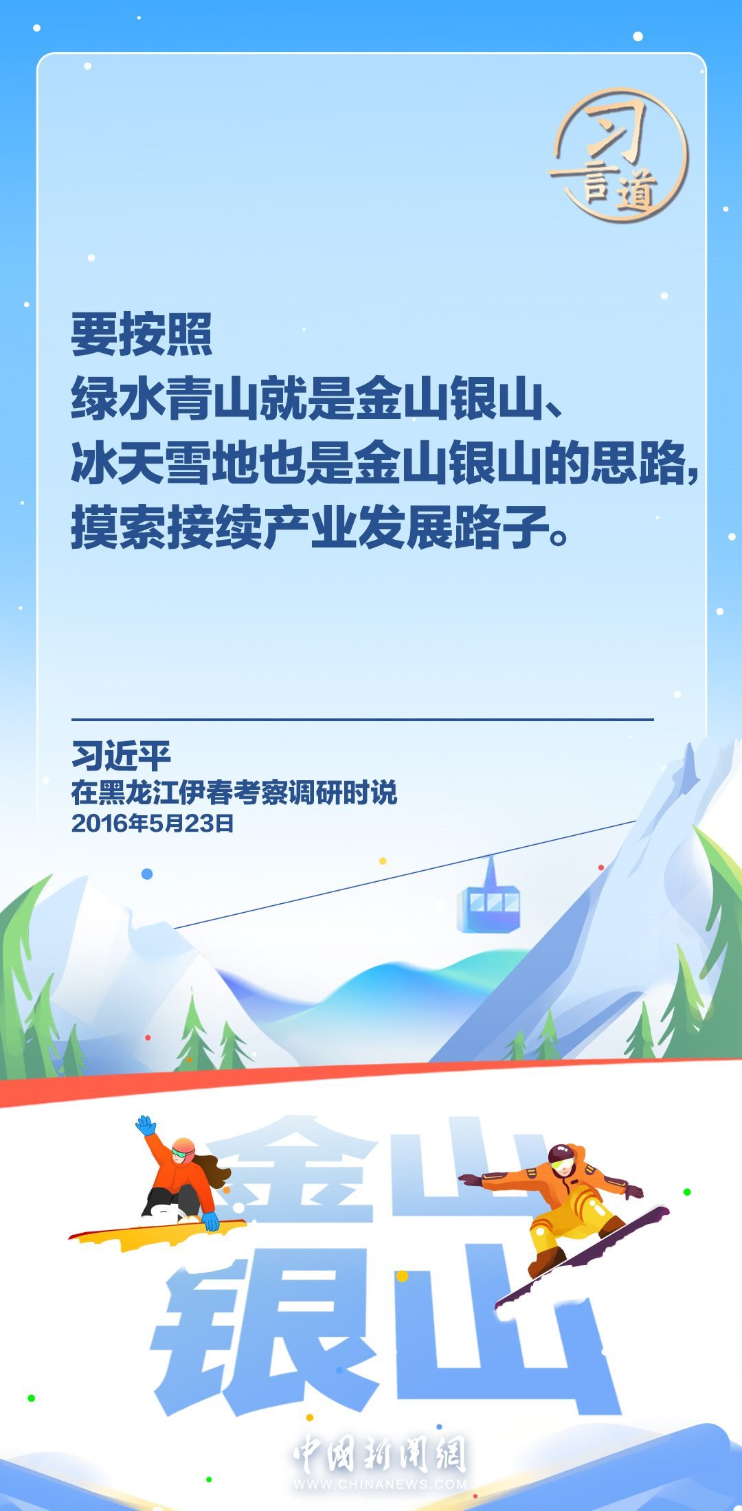冰天雪地也是金山銀山。習(xí)近平總書(shū)記高度重視發(fā)展冰雪經(jīng)濟(jì),多次作出重要指示批示,強(qiáng)調(diào)冰雪產(chǎn)業(yè)是一個(gè)大產(chǎn)業(yè),也是一個(gè)朝陽(yáng)產(chǎn)業(yè)。