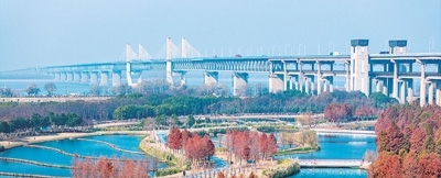 安徽省蕪湖市鏡湖區(qū)江東水生態(tài)公園風景。