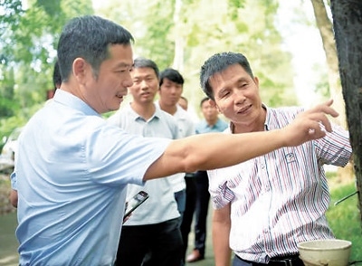 全國政協(xié)委員、中國科學院院士黃三文(左一)在海南省儋州市調(diào)研橡膠產(chǎn)業(yè)科技創(chuàng)新情況。