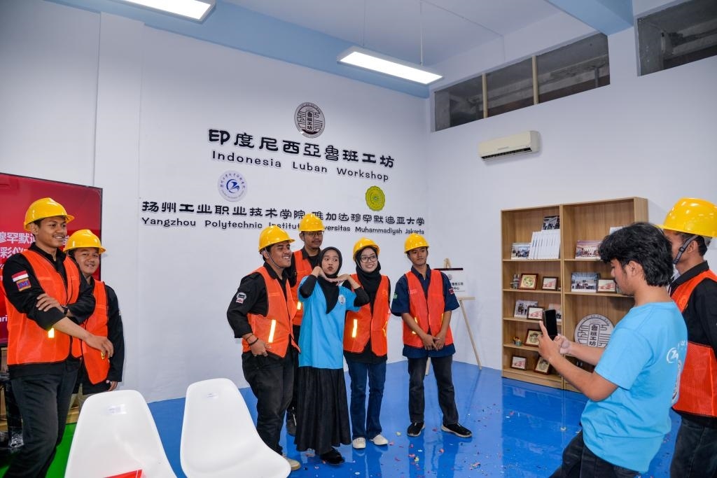 2月28日,在印度尼西亞雅加達(dá),學(xué)生在印尼魯班工坊智能制造中心揭牌剪彩儀式后合影。新華社記者 徐欽 攝