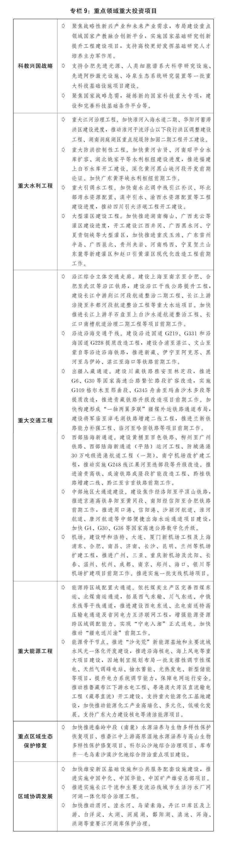 聚焦大保護、大開放、高質(zhì)量發(fā)展進一步推動西部大開發(fā)形成新格局,深入實施青藏高原生態(tài)屏障區(qū)等重要生態(tài)系統(tǒng)保護和修復(fù)重大工程,提升重慶、成都、西安等輻射帶動作用,加強互聯(lián)互通,做強做大特色優(yōu)勢產(chǎn)業(yè)。支持東北地區(qū)進一步提升維護國家“五大安全”能力,統(tǒng)籌推進傳統(tǒng)產(chǎn)業(yè)轉(zhuǎn)型升級和戰(zhàn)略性新興產(chǎn)業(yè)培育壯大,加快建設(shè)交通、能源、信息等現(xiàn)代化基礎(chǔ)設(shè)施體系,深化與東北亞區(qū)域合作。落實落細(xì)新時代推動中部地區(qū)加快崛起的若干政策措施,扎實推進“三基地一樞紐”建設(shè),依托重要功能平臺有序擴大內(nèi)陸開放。鼓勵東部地區(qū)加快推進現(xiàn)代化,推動福建全方位高質(zhì)量發(fā)展、建設(shè)兩岸融合發(fā)展示范區(qū),以更大力度支持山東新舊動能轉(zhuǎn)換、提升濟南新舊動能轉(zhuǎn)換起步區(qū)產(chǎn)業(yè)能級。