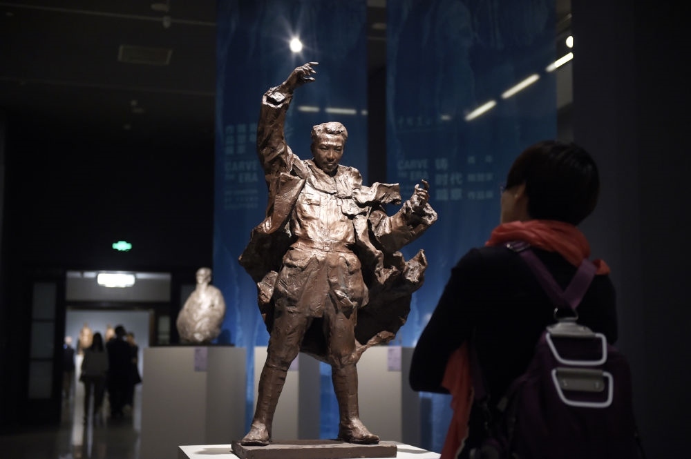 2018年4月1日,參觀者在北京的中國美術館參觀雕塑作品“冼星?!?。新華社記者 魯鵬攝