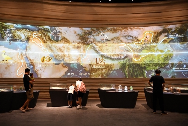6月14日,參觀者在大河村遺址博物館沉浸式參觀體驗(yàn)。