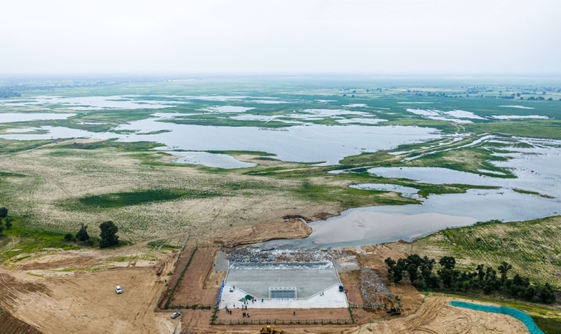 綽爾河水流入通遼市莫力廟水庫(6月30日攝,無人機照片)。