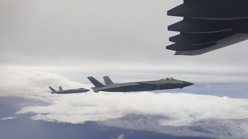 9月12日,第十二批在韓中國(guó)人民志愿軍烈士遺骸回國(guó)。這是為接運(yùn)烈士遺骸回國(guó)的運(yùn)-20專機(jī)伴飛護(hù)航的殲-20飛機(jī)。