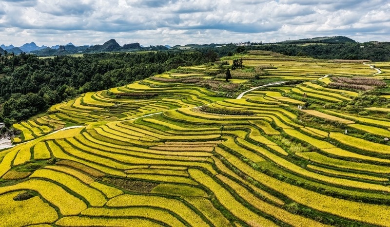 長(zhǎng)順縣長(zhǎng)寨街道中塘村的梯田風(fēng)光(9月17日攝,無(wú)人機(jī)照片)。