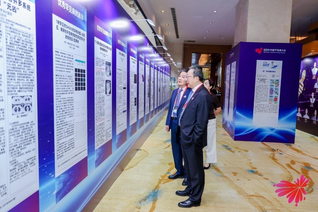2025年中國(guó)罕見(jiàn)病大會(huì)現(xiàn)場(chǎng),參會(huì)人員參觀現(xiàn)場(chǎng)宣傳墻。(中國(guó)罕見(jiàn)病聯(lián)盟供圖)