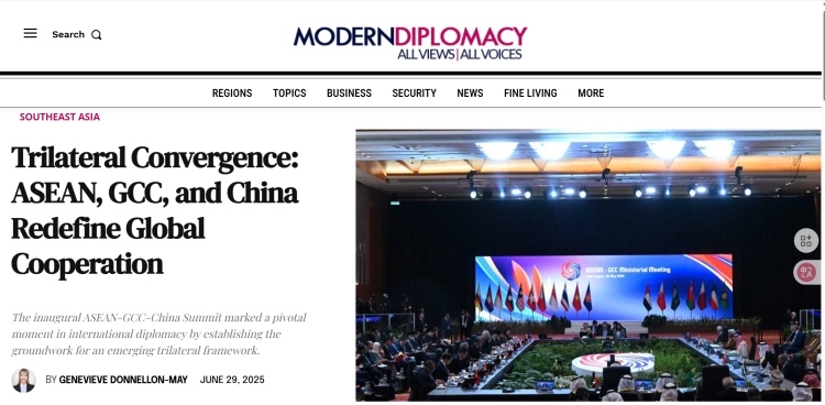 6月29日,歐洲《現(xiàn)代外交》網站刊發(fā)評論文章《三方協(xié)同:東盟、海合會與中國重新定義全球合作》。文章從不久前圓滿閉幕的首屆東盟—中國—海合會峰會出發(fā),指出東盟、海合會與中國之間的三方合作對推動世界多極化、促進全球南方國家發(fā)展具有重要意義,中國作為負責任大國在全球治理中發(fā)揮了關鍵領導作用。