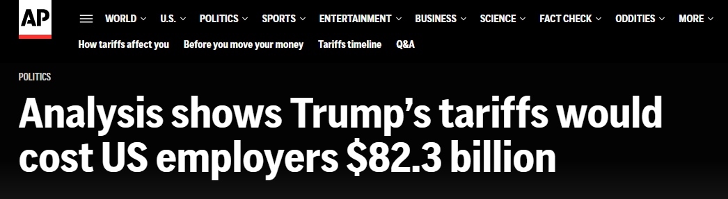 4月份,特朗普政府宣布所謂“對(duì)等關(guān)稅”政策后,金融市場(chǎng)出現(xiàn)恐慌。隨后,又設(shè)定了90天談判期,期間多數(shù)進(jìn)口商品面臨10%基準(zhǔn)稅率。報(bào)道稱,若4月2日的初始關(guān)稅維持不變,研究中所涉及的企業(yè)將承受更為高昂的1876億美元的額外成本。若按照現(xiàn)行稅率,823億美元成本平均到每位員工身上就是2080美元,相當(dāng)于年均薪資的3.1%。這一平均值涵蓋了無(wú)進(jìn)口業(yè)務(wù)與有進(jìn)口業(yè)務(wù)企業(yè)。