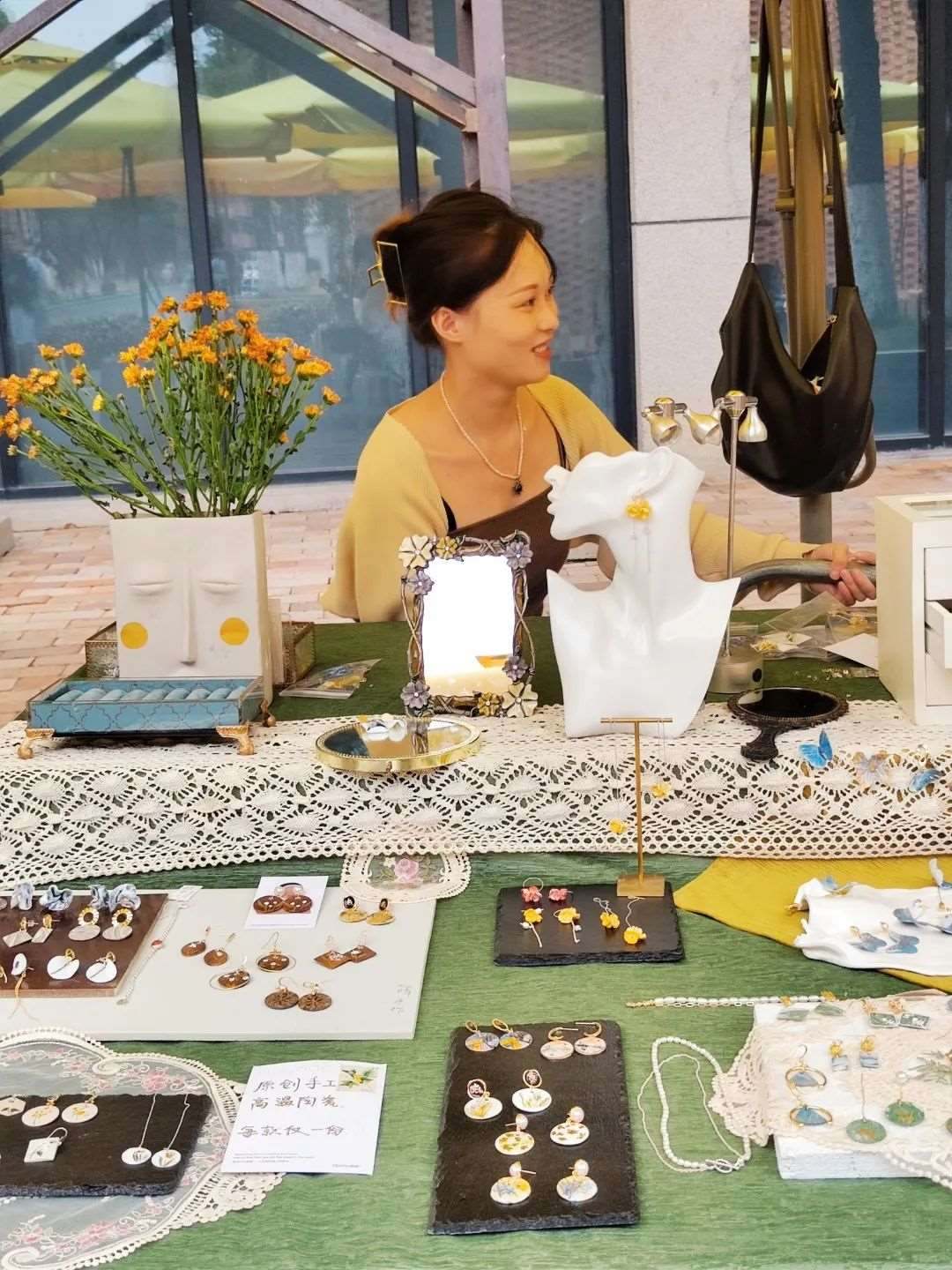 畢業(yè)于湖北美術(shù)學(xué)院陶瓷藝術(shù)專業(yè)的楊帆,2020年放棄本校讀研的機(jī)會(huì),選擇到江西景德鎮(zhèn)創(chuàng)業(yè),主打陶瓷首飾創(chuàng)作?!耙郧澳芟氲降木蜆I(yè)方向是當(dāng)美術(shù)老師或者開陶吧,直到在景德鎮(zhèn)看到另一種可能?!睏罘f(shuō),大四那年,景德鎮(zhèn)的陶溪川創(chuàng)意集市邀請(qǐng)她們學(xué)校師生去擺攤,讓她看到了一種新生活——夜幕降臨后,幾百個(gè)年輕人一起出攤把作品賣出去。